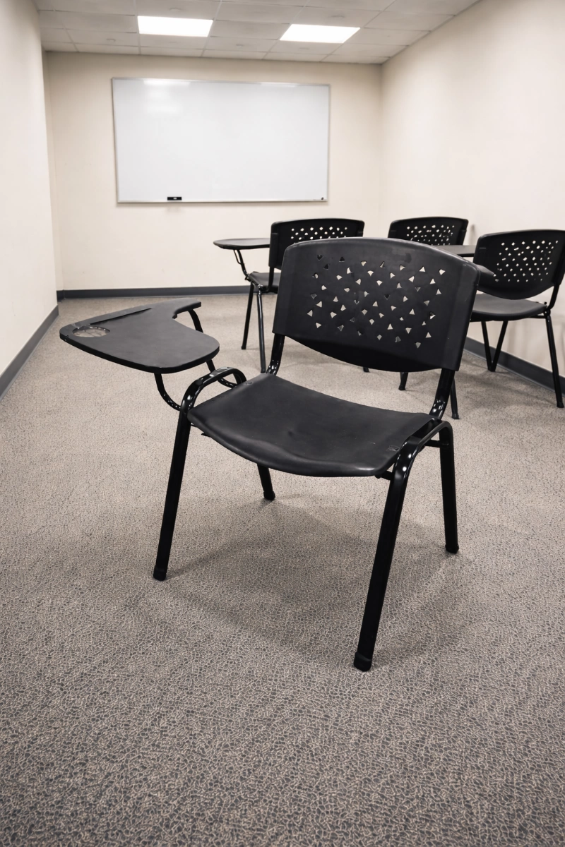 Silla plástica con mesa de trabajo